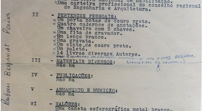 b) uma lista de pertences, documento encontrado em novembro de 2012 na casa de um coronel reformado, assassinado naquele ano em Porto Alegre.