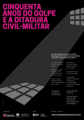 O nosso curso de formação online para professores este ano será sobre os 50 anos do Golpe e a Ditadura Civil-Militar. Para os que se inscreveram junto com a Olimpíada este ano, basta aguardar o início dos trabalhos.