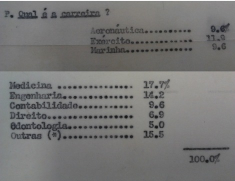 A expressão tomou foros de verdade, e vai sendo repetida, quase consagrada: ‘Brasil… país de doutores!’. Do país de doutores é que o Brasil não tem nada. É a realidade fria das cifras estatísticas quem nos mostra o contrário: o Brasil tem, sim, é uma carência de ‘doutores’. De ‘doutores’ que sejam engenheiros, agrônomos, veterinários, químicos, dentistas, médicos. Até mesmo bacharéis!… Por outro lado (numa porcentagem muito significativa) uma consulta efetuada junto a jovens estudantes, aqui do Distrito Federal, vem nos mostrar uma forte inclinação pela carreira militar, representada pelas clássicas 3 armas. Dos estudantes cariocas ouvidos pelo IBOPE (entre ginásio e colégio) cerca de 30% irão tentar a Aeronáutica, a Marinha ou o Exercito. 30% que se concentram numa só profissão – embora em 3 ramos – e a que se contrapõe 70% divididos em vinte e uma profissões! Entre o anel e a espada, os corações balançam…